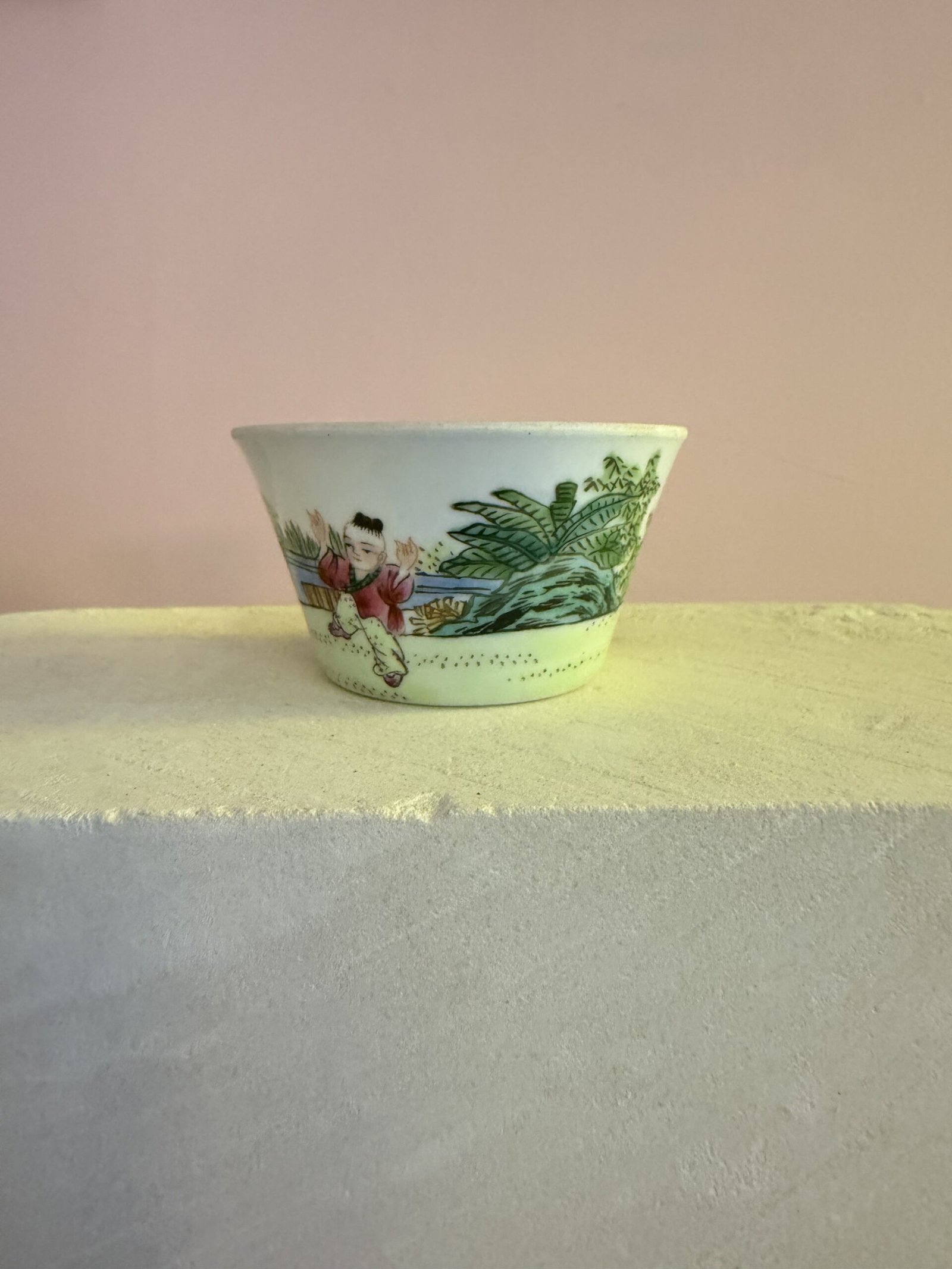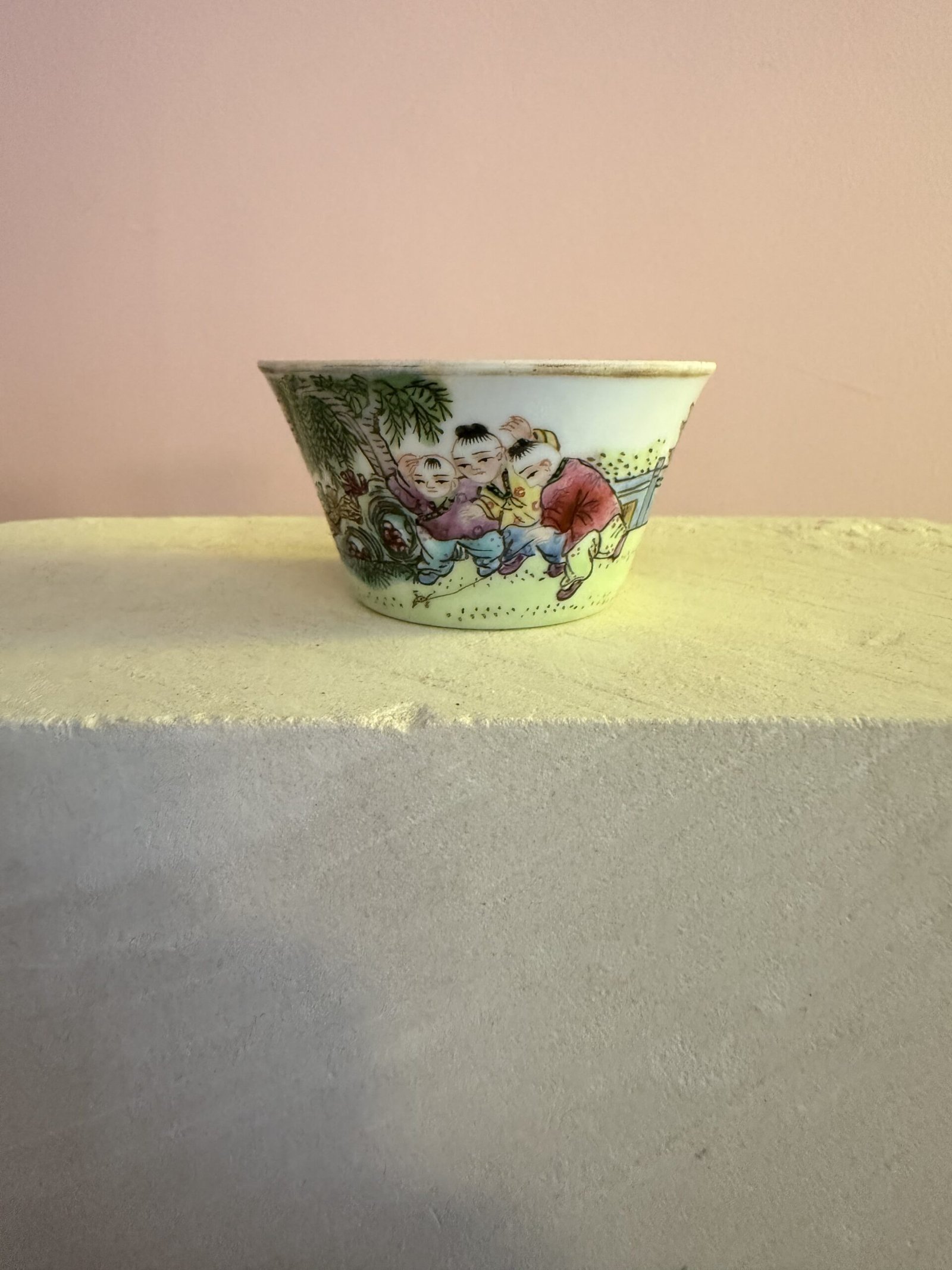 The subject matter, often referred to as the “boys at play” motif, was a popular theme in Qing porcelain and symbolized prosperity, happiness, and the wish for many sons.
