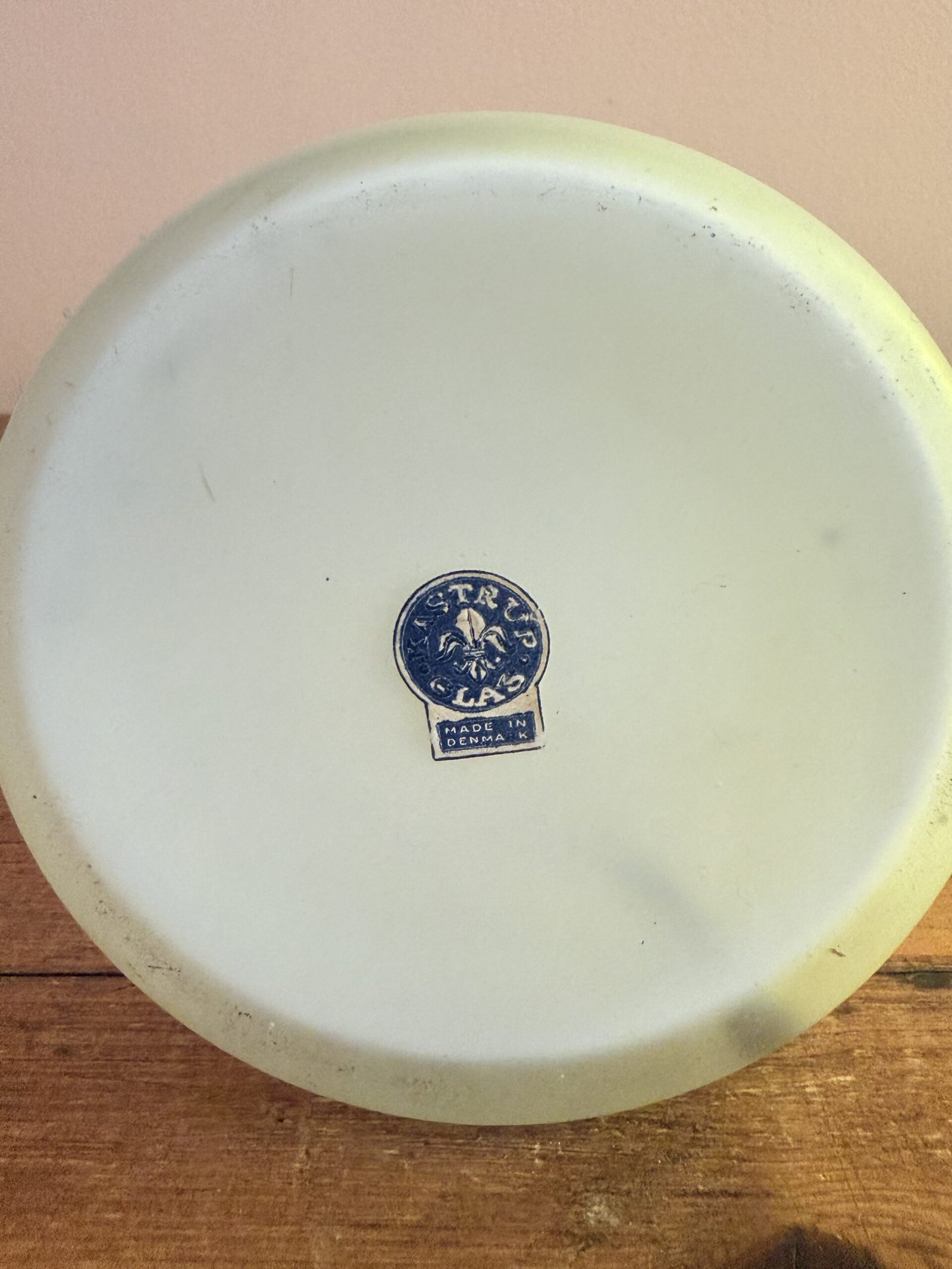 The underside retains the original Kastrup Glas label, confirming its original Danish origin. Kastrup was one of Denmark’s leading glassworks before merging with Holmegaard in 1965, and pieces with intact labels are increasingly hard to find.