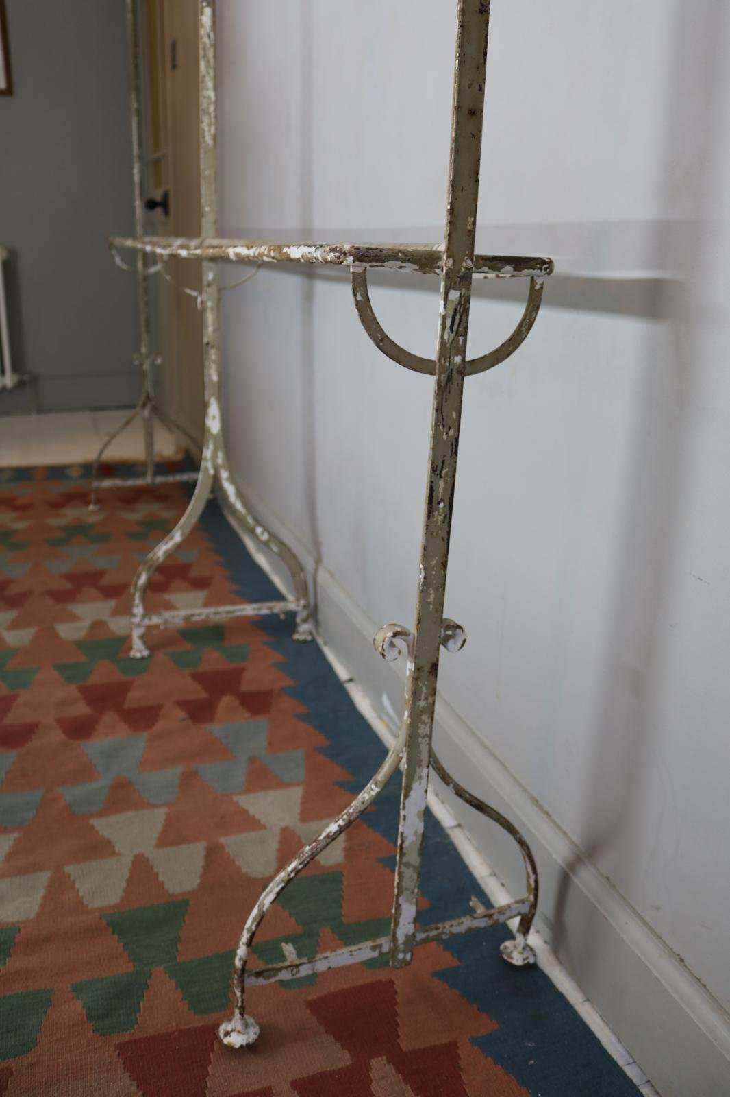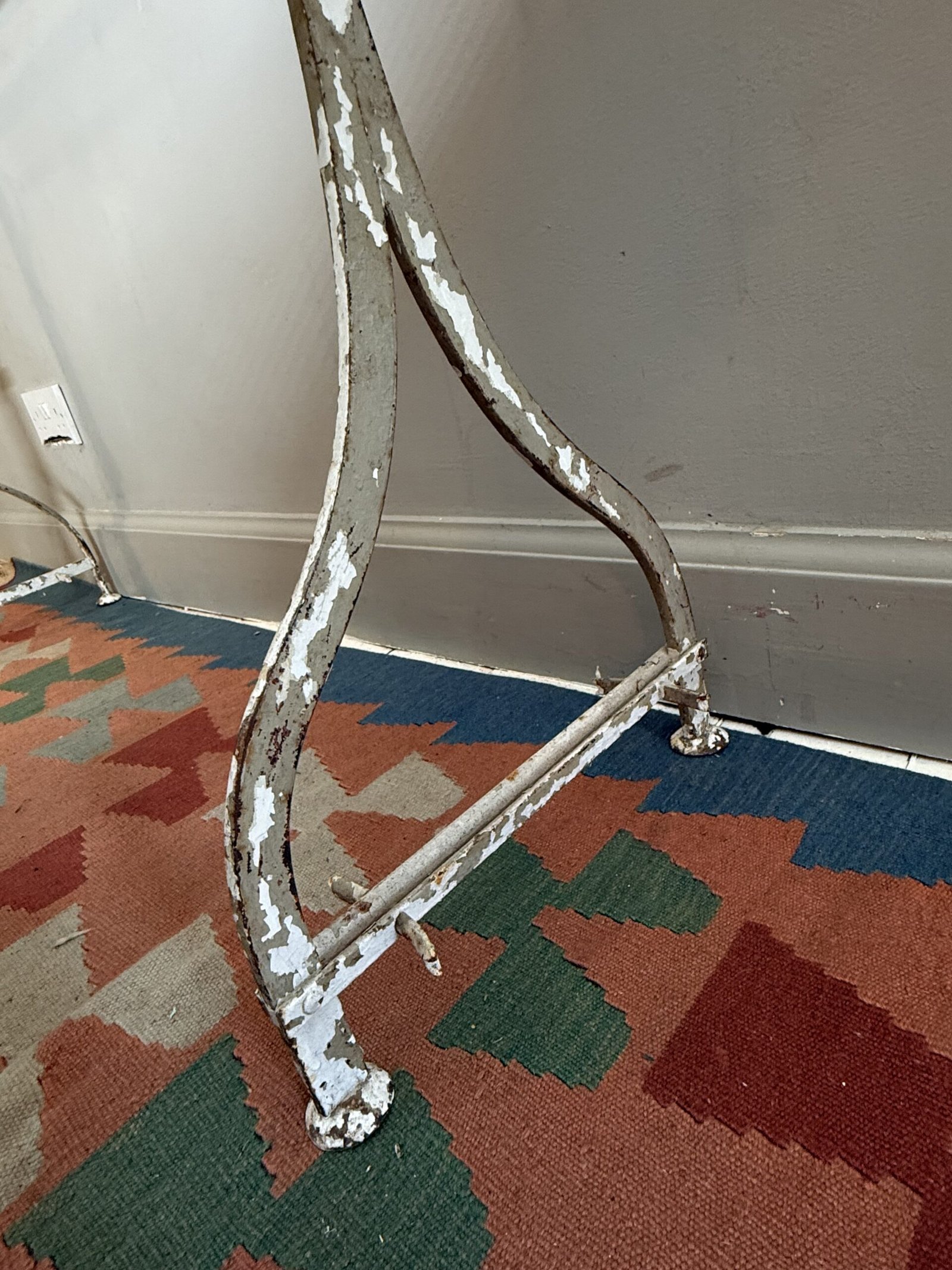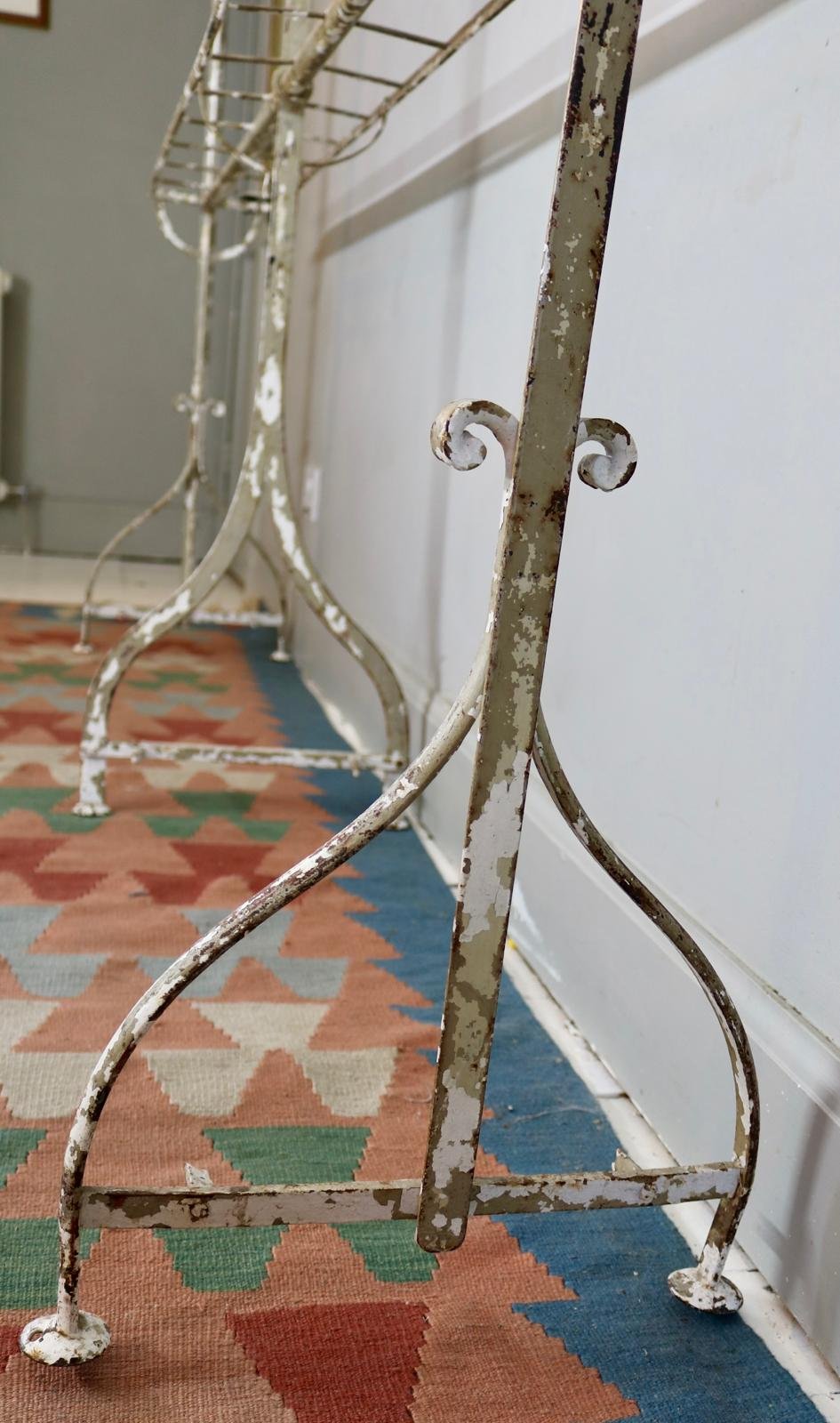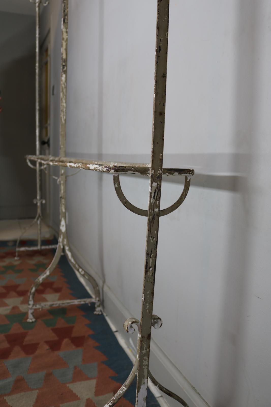 The stand retains its original distressed white paintwork, with areas of stone-grey metalwork showing through—perfect for a shabby chic aesthetic. Its impressive design and scale make it a true statement piece.
