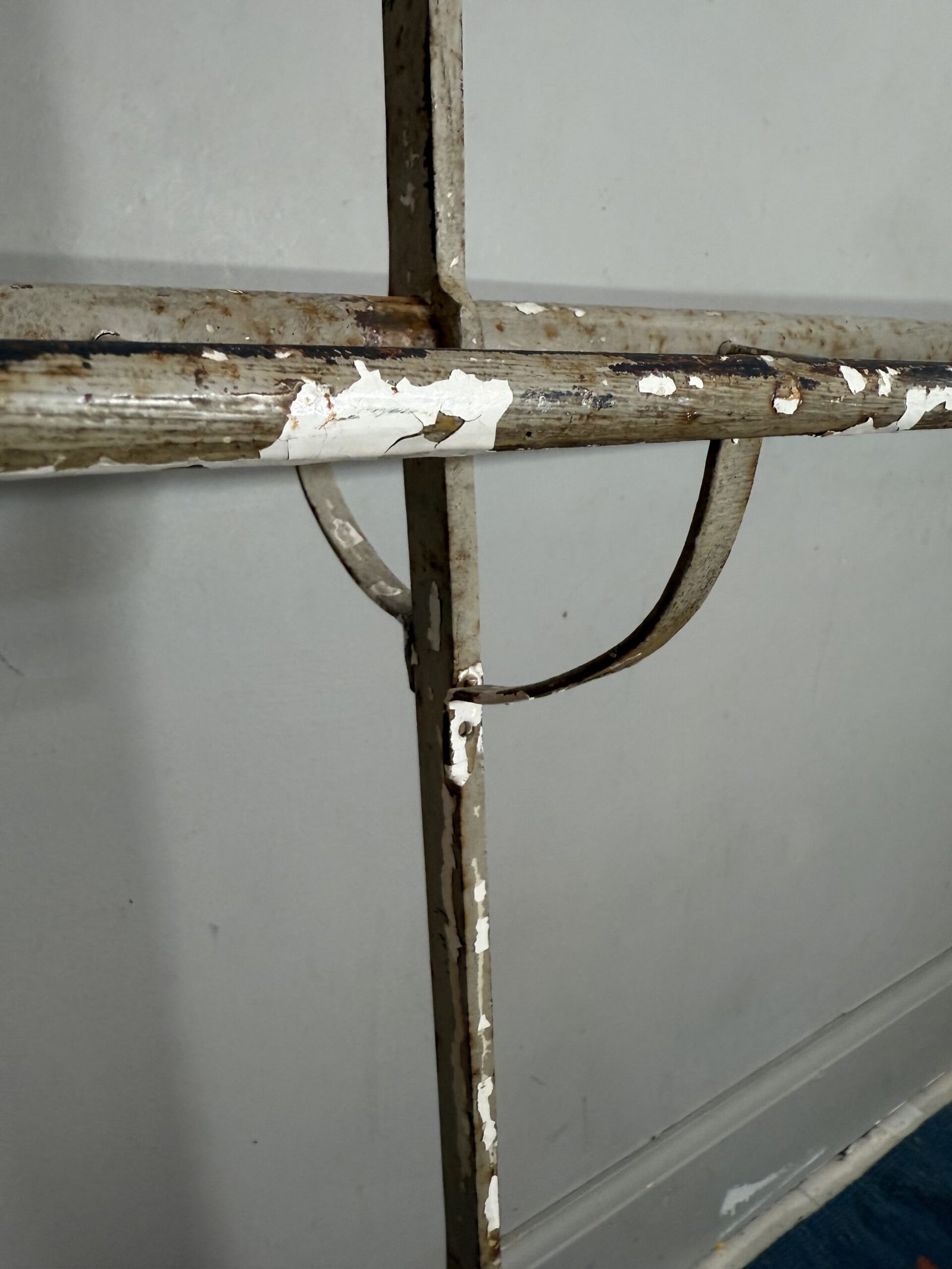 Original distressed white paint with exposed metal areas creating an attractive patina