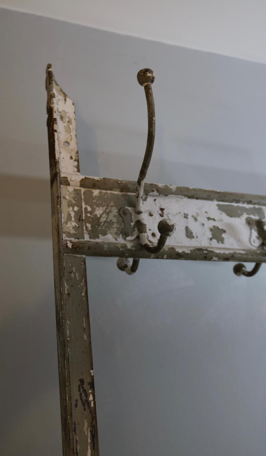 This antique coat rack would make an incredible feature in a large entryway, boot room, retail boutique, restaurant, or office. Its rarity, size, and original condition make it a truly unique piece.